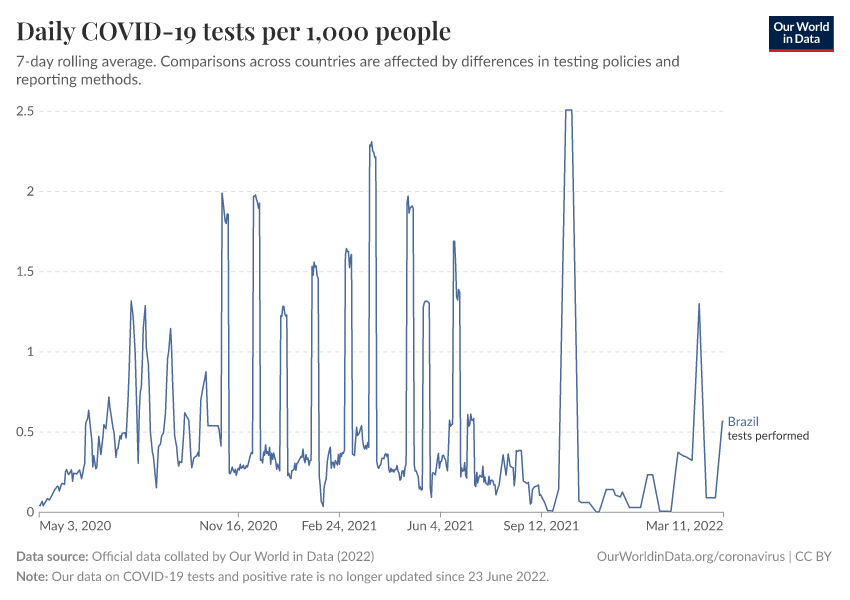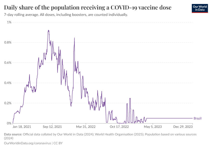 Hannah Ritchie (2025) - “Coronavirus Pandemic” Published online at OurWorldinData.org. Retrieved from: 'https://ourworldindata.org/profile/coronavirus/brazil' [Online Resource]BibTeX citation