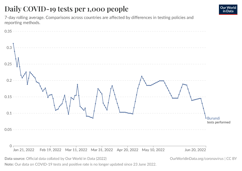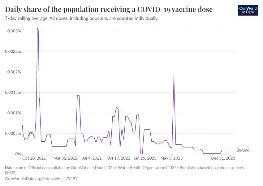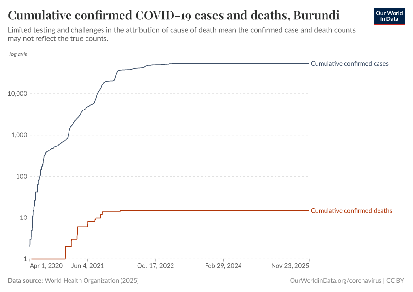 Hannah Ritchie (2025) - “Coronavirus Pandemic” Published online at OurWorldinData.org. Retrieved from: 'https://ourworldindata.org/profile/coronavirus/burundi' [Online Resource]BibTeX citation