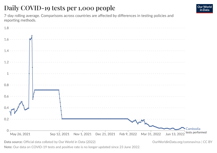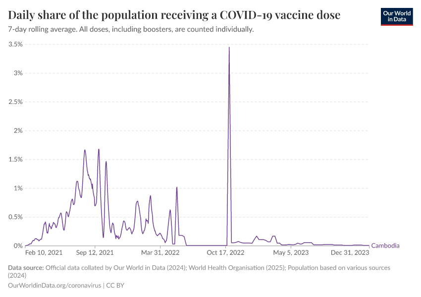 Hannah Ritchie (2025) - “Coronavirus Pandemic” Published online at OurWorldinData.org. Retrieved from: 'https://ourworldindata.org/profile/coronavirus/cambodia' [Online Resource]BibTeX citation