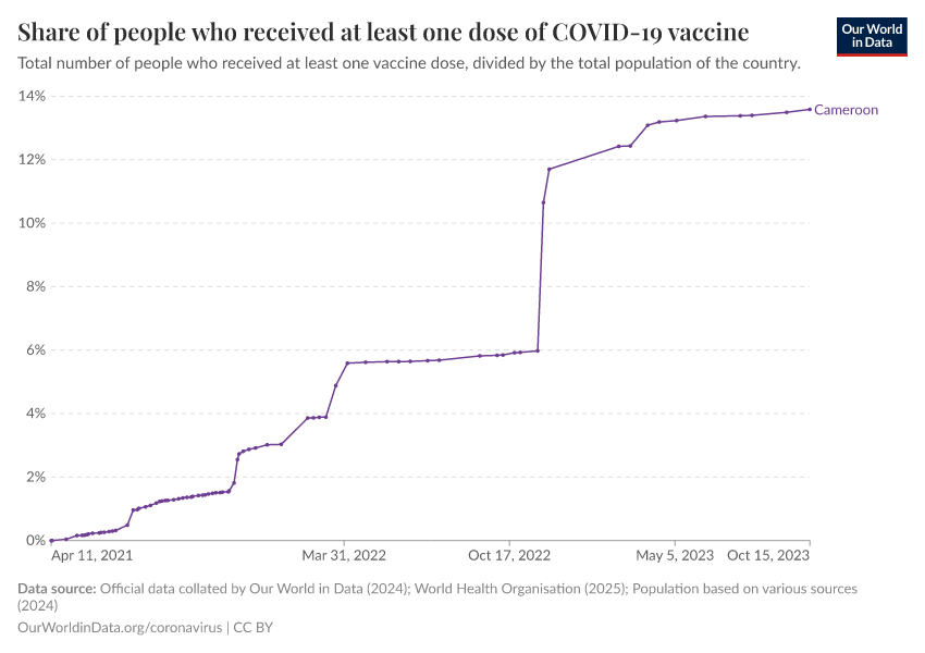 Hannah Ritchie (2025) - “Coronavirus Pandemic” Published online at OurWorldinData.org. Retrieved from: 'https://ourworldindata.org/profile/coronavirus/cameroon' [Online Resource]BibTeX citation