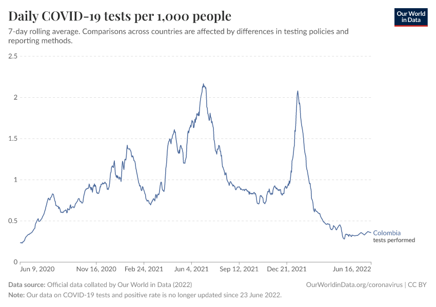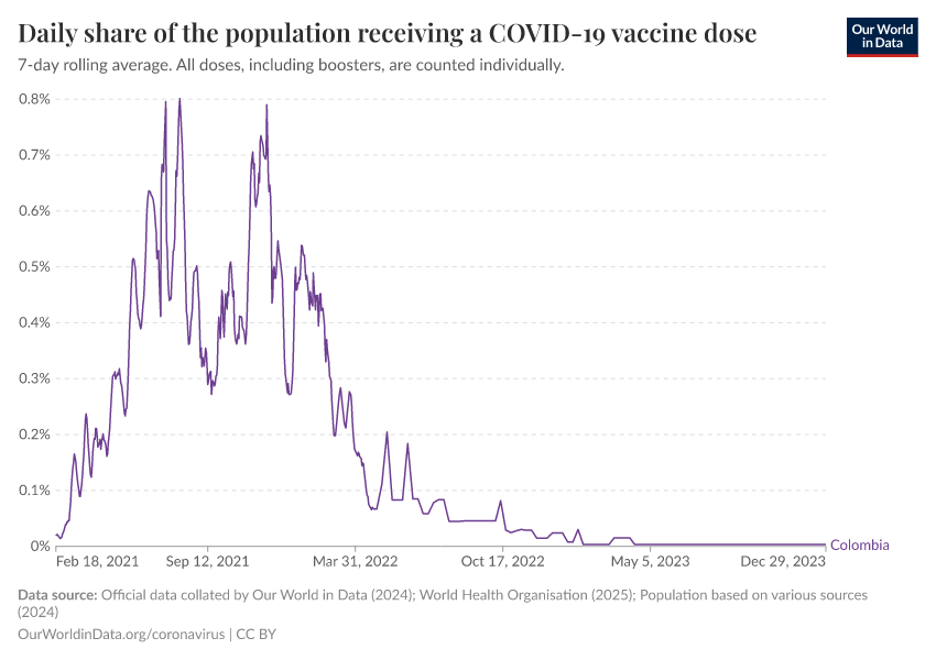 Hannah Ritchie (2025) - “Coronavirus Pandemic” Published online at OurWorldinData.org. Retrieved from: 'https://ourworldindata.org/profile/coronavirus/colombia' [Online Resource]BibTeX citation