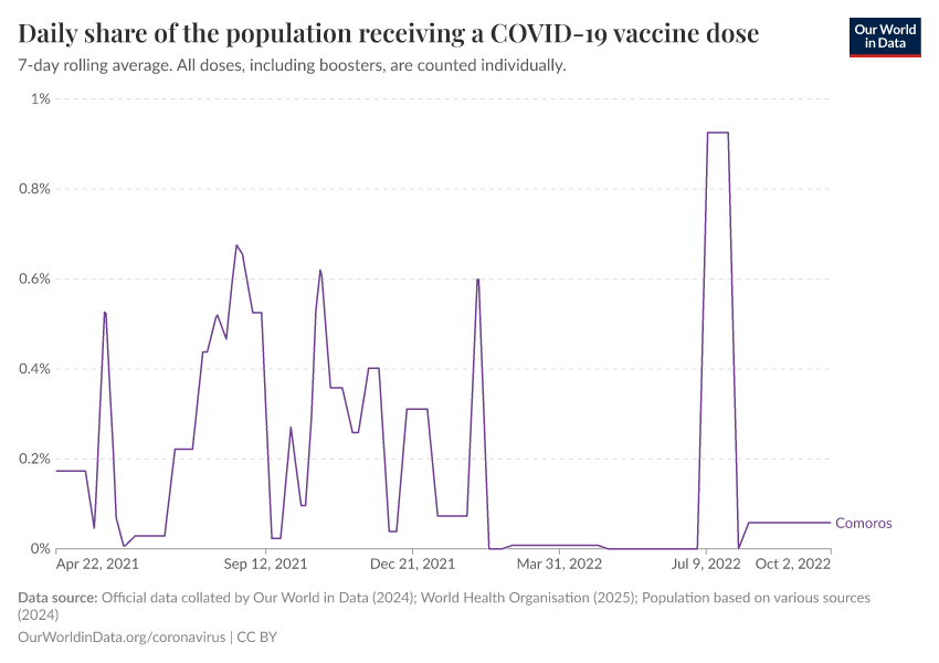 Hannah Ritchie (2025) - “Coronavirus Pandemic” Published online at OurWorldinData.org. Retrieved from: 'https://ourworldindata.org/profile/coronavirus/comoros' [Online Resource]BibTeX citation