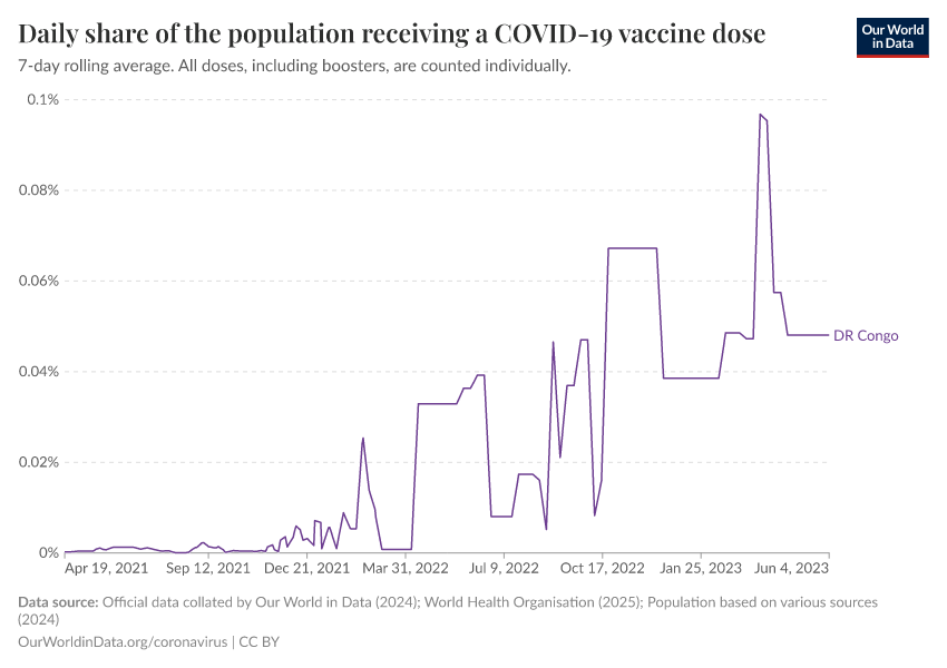 Hannah Ritchie (2025) - “Coronavirus Pandemic” Published online at OurWorldinData.org. Retrieved from: 'https://ourworldindata.org/profile/coronavirus/democratic-republic-of-congo' [Online Resource]BibTeX citation