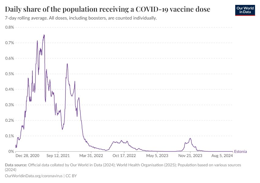 Hannah Ritchie (2025) - “Coronavirus Pandemic” Published online at OurWorldinData.org. Retrieved from: 'https://ourworldindata.org/profile/coronavirus/estonia' [Online Resource]BibTeX citation