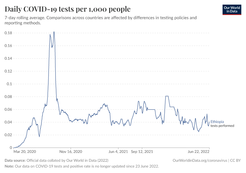 Hannah Ritchie (2025) - “Coronavirus Pandemic” Published online at OurWorldinData.org. Retrieved from: 'https://ourworldindata.org/profile/coronavirus/ethiopia' [Online Resource]BibTeX citation