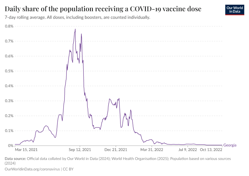 Hannah Ritchie (2025) - “Coronavirus Pandemic” Published online at OurWorldinData.org. Retrieved from: 'https://ourworldindata.org/profile/coronavirus/georgia' [Online Resource]BibTeX citation