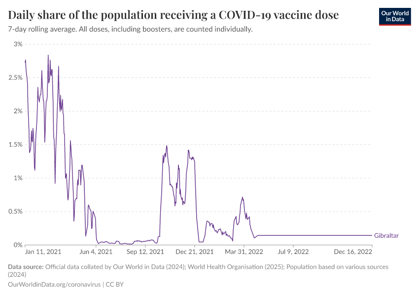 Hannah Ritchie (2025) - “Coronavirus Pandemic” Published online at OurWorldinData.org. Retrieved from: 'https://ourworldindata.org/profile/coronavirus/gibraltar' [Online Resource]BibTeX citation