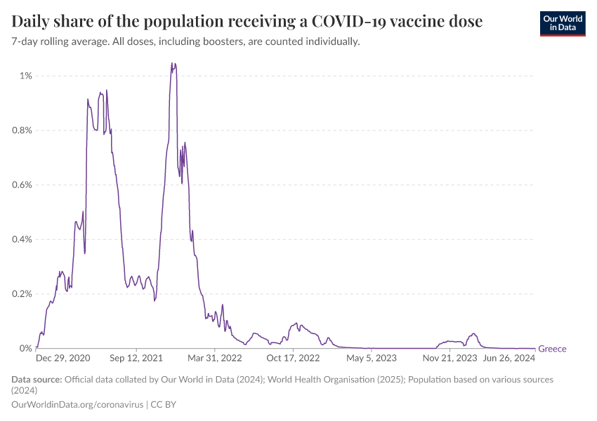 Hannah Ritchie (2025) - “Coronavirus Pandemic” Published online at OurWorldinData.org. Retrieved from: 'https://ourworldindata.org/profile/coronavirus/greece' [Online Resource]BibTeX citation