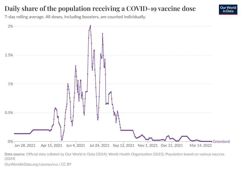 Hannah Ritchie (2025) - “Coronavirus Pandemic” Published online at OurWorldinData.org. Retrieved from: 'https://ourworldindata.org/profile/coronavirus/greenland' [Online Resource]BibTeX citation