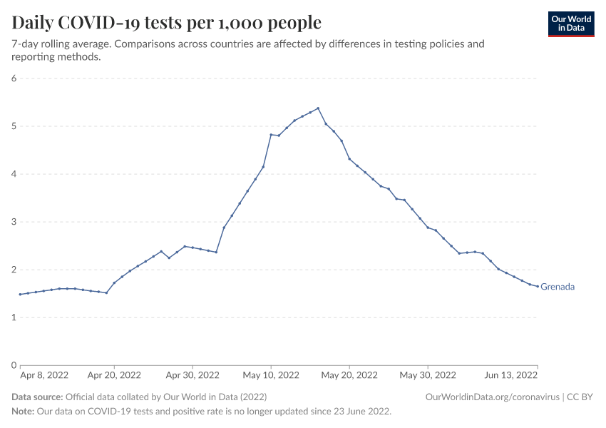 Hannah Ritchie (2025) - “Coronavirus Pandemic” Published online at OurWorldinData.org. Retrieved from: 'https://ourworldindata.org/profile/coronavirus/grenada' [Online Resource]BibTeX citation