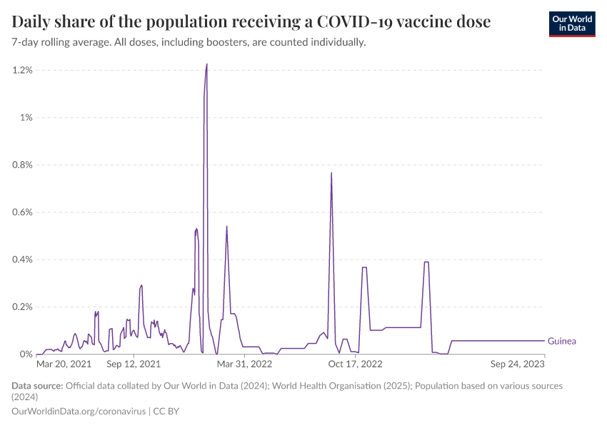 Hannah Ritchie (2025) - “Coronavirus Pandemic” Published online at OurWorldinData.org. Retrieved from: 'https://ourworldindata.org/profile/coronavirus/guinea' [Online Resource]BibTeX citation