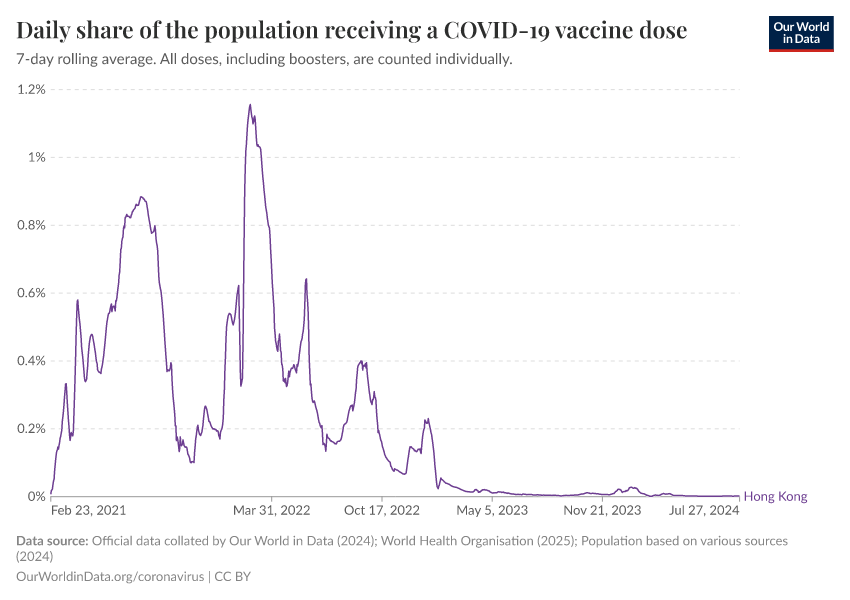 Hannah Ritchie (2025) - “Coronavirus Pandemic” Published online at OurWorldinData.org. Retrieved from: 'https://ourworldindata.org/profile/coronavirus/hong-kong' [Online Resource]BibTeX citation