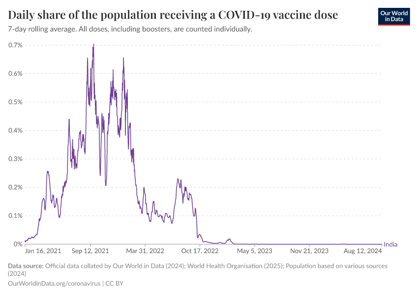 Hannah Ritchie (2025) - “Coronavirus Pandemic” Published online at OurWorldinData.org. Retrieved from: 'https://ourworldindata.org/profile/coronavirus/india' [Online Resource]BibTeX citation