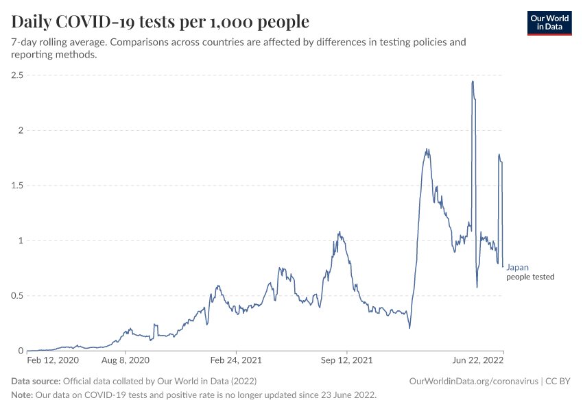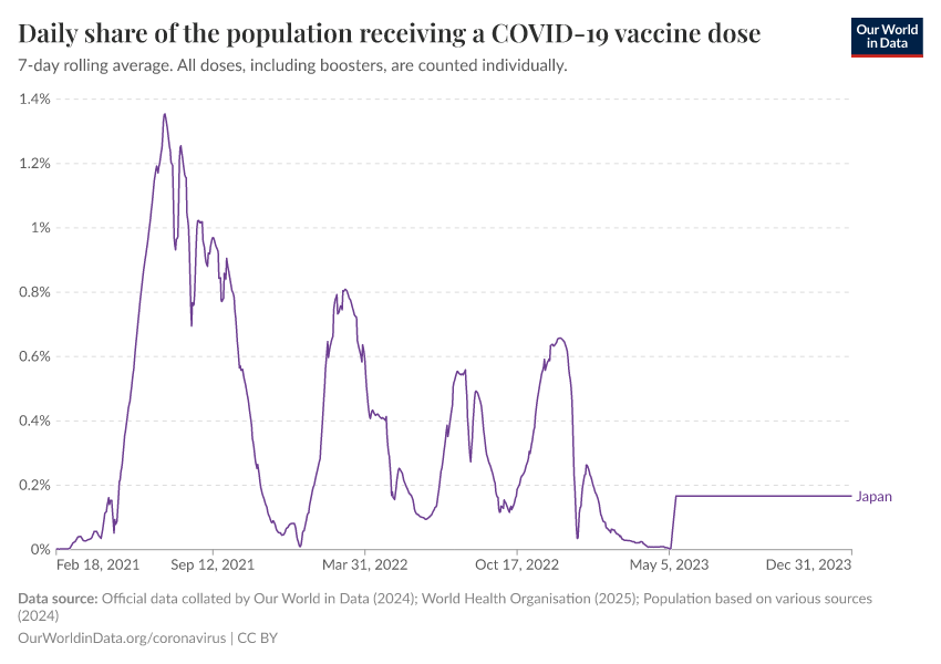 Hannah Ritchie (2025) - “Coronavirus Pandemic” Published online at OurWorldinData.org. Retrieved from: 'https://ourworldindata.org/profile/coronavirus/japan' [Online Resource]BibTeX citation