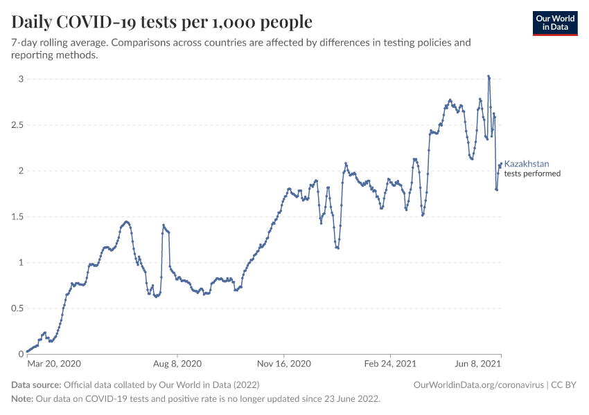 Hannah Ritchie (2025) - “Coronavirus Pandemic” Published online at OurWorldinData.org. Retrieved from: 'https://ourworldindata.org/profile/coronavirus/kazakhstan' [Online Resource]BibTeX citation