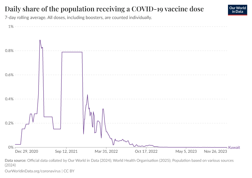 Hannah Ritchie (2025) - “Coronavirus Pandemic” Published online at OurWorldinData.org. Retrieved from: 'https://ourworldindata.org/profile/coronavirus/kuwait' [Online Resource]BibTeX citation