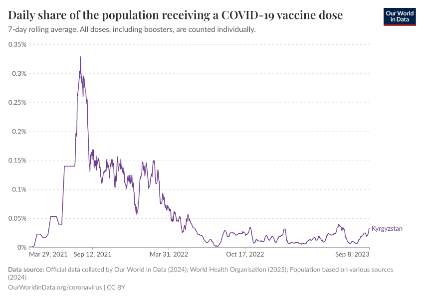 Hannah Ritchie (2025) - “Coronavirus Pandemic” Published online at OurWorldinData.org. Retrieved from: 'https://ourworldindata.org/profile/coronavirus/kyrgyzstan' [Online Resource]BibTeX citation
