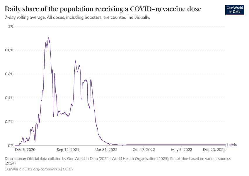 Hannah Ritchie (2025) - “Coronavirus Pandemic” Published online at OurWorldinData.org. Retrieved from: 'https://ourworldindata.org/profile/coronavirus/latvia' [Online Resource]BibTeX citation