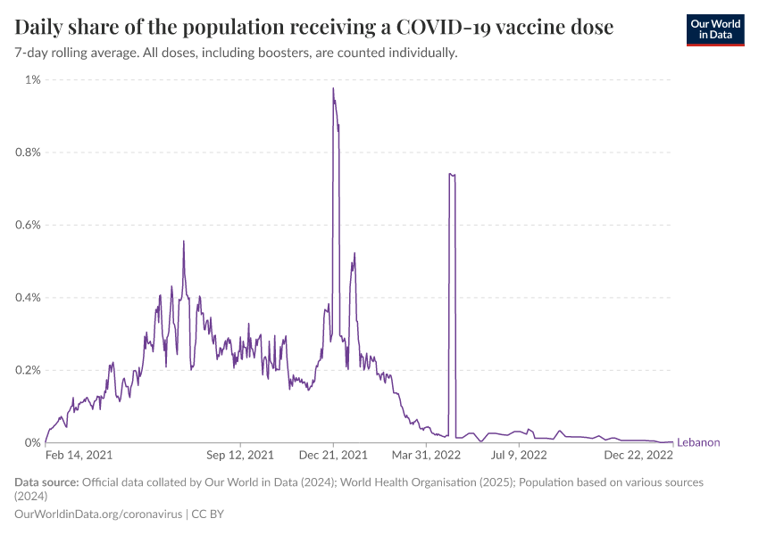 Hannah Ritchie (2025) - “Coronavirus Pandemic” Published online at OurWorldinData.org. Retrieved from: 'https://ourworldindata.org/profile/coronavirus/lebanon' [Online Resource]BibTeX citation
