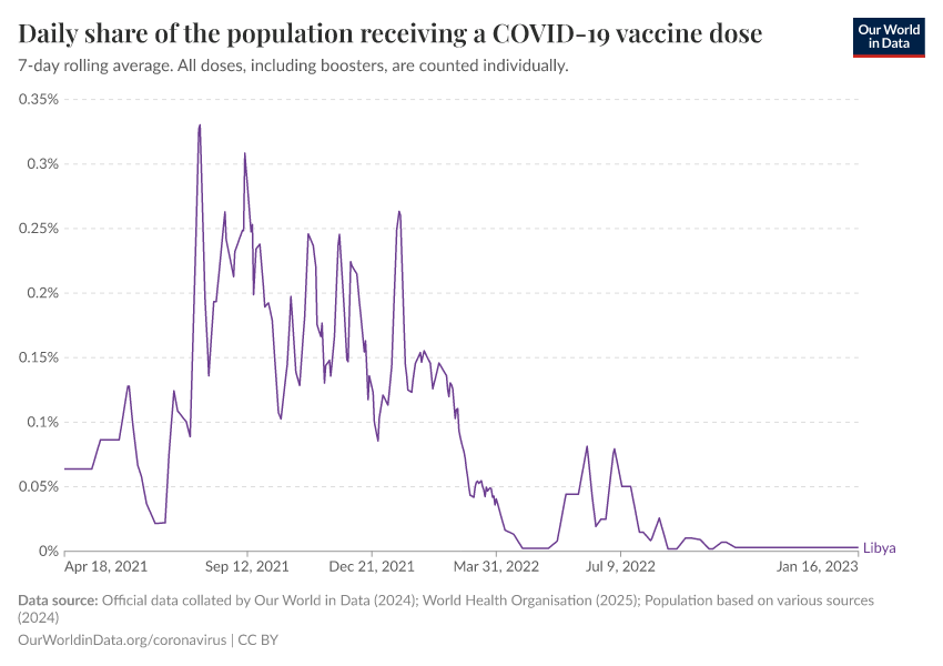 Hannah Ritchie (2025) - “Coronavirus Pandemic” Published online at OurWorldinData.org. Retrieved from: 'https://ourworldindata.org/profile/coronavirus/libya' [Online Resource]BibTeX citation