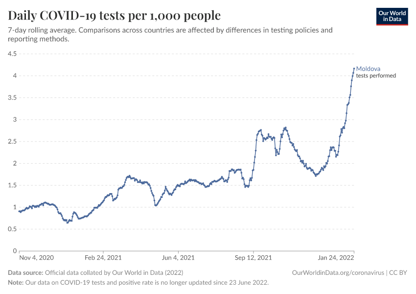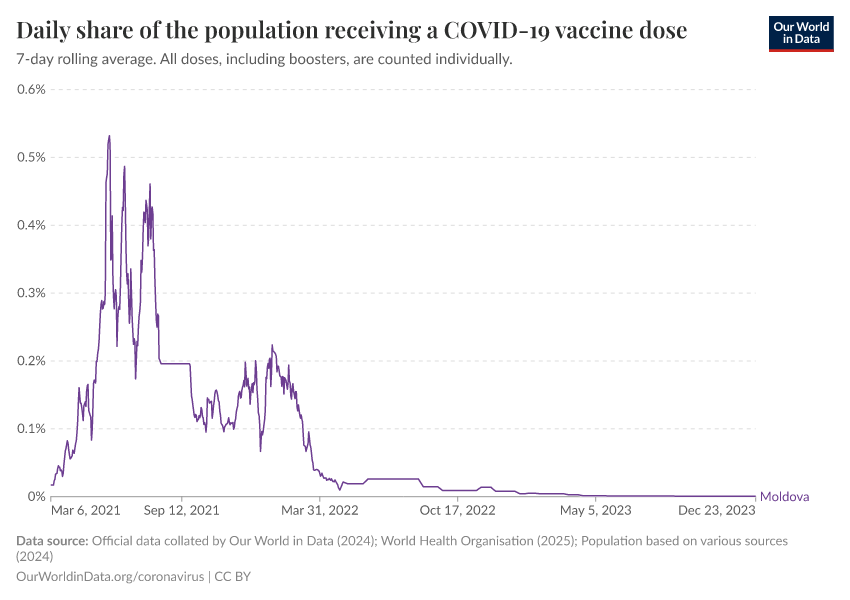 Hannah Ritchie (2025) - “Coronavirus Pandemic” Published online at OurWorldinData.org. Retrieved from: 'https://ourworldindata.org/profile/coronavirus/moldova' [Online Resource]BibTeX citation