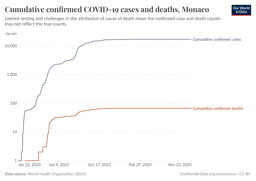 Hannah Ritchie (2025) - “Coronavirus Pandemic” Published online at OurWorldinData.org. Retrieved from: 'https://ourworldindata.org/profile/coronavirus/monaco' [Online Resource]BibTeX citation