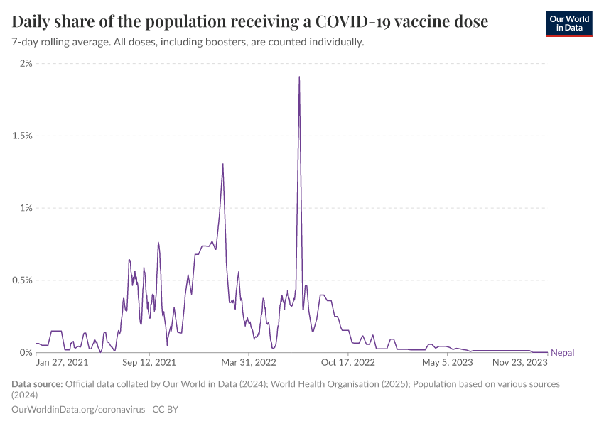 Hannah Ritchie (2025) - “Coronavirus Pandemic” Published online at OurWorldinData.org. Retrieved from: 'https://ourworldindata.org/profile/coronavirus/nepal' [Online Resource]BibTeX citation