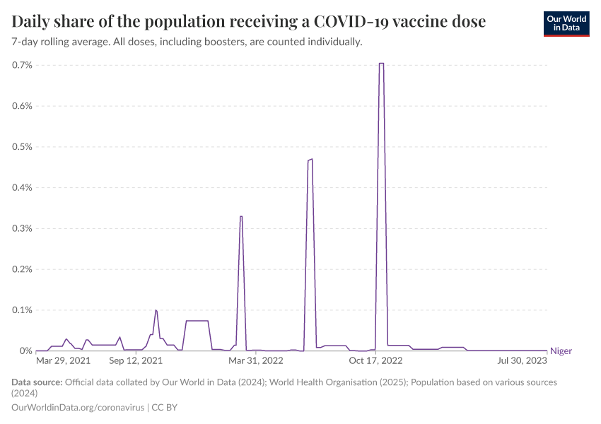 Hannah Ritchie (2025) - “Coronavirus Pandemic” Published online at OurWorldinData.org. Retrieved from: 'https://ourworldindata.org/profile/coronavirus/niger' [Online Resource]BibTeX citation
