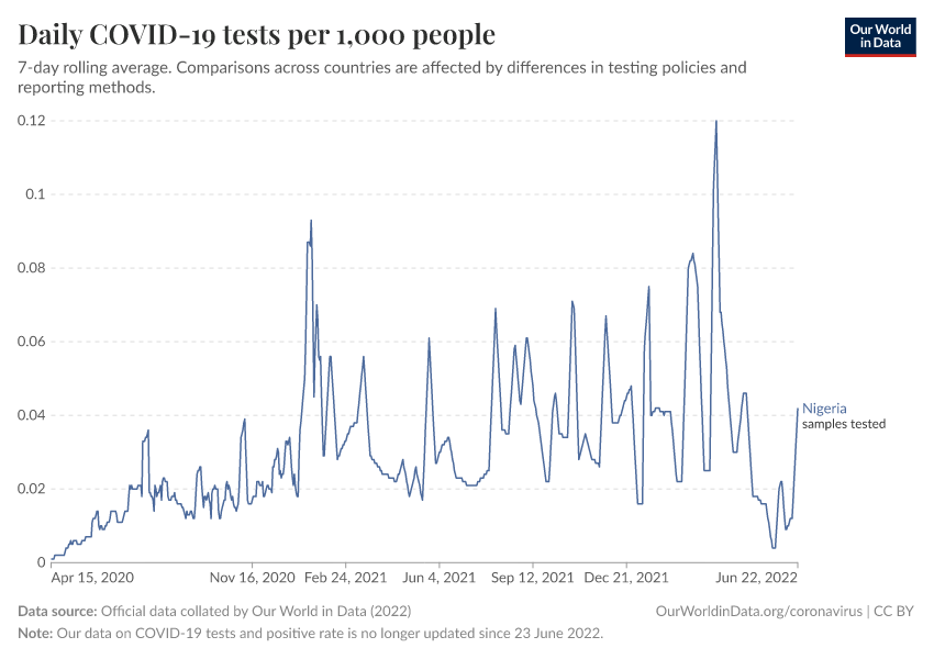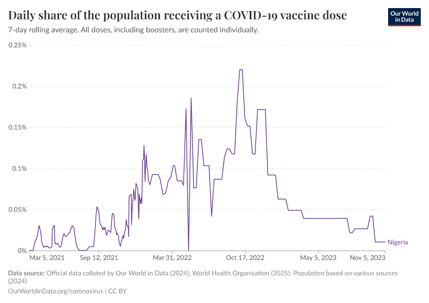Hannah Ritchie (2025) - “Coronavirus Pandemic” Published online at OurWorldinData.org. Retrieved from: 'https://ourworldindata.org/profile/coronavirus/nigeria' [Online Resource]BibTeX citation