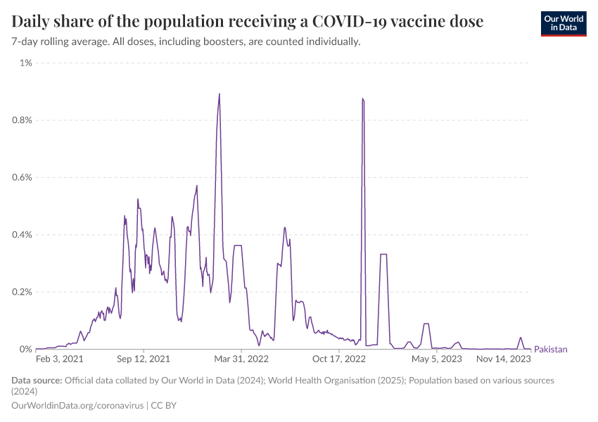 Hannah Ritchie (2025) - “Coronavirus Pandemic” Published online at OurWorldinData.org. Retrieved from: 'https://ourworldindata.org/profile/coronavirus/pakistan' [Online Resource]BibTeX citation