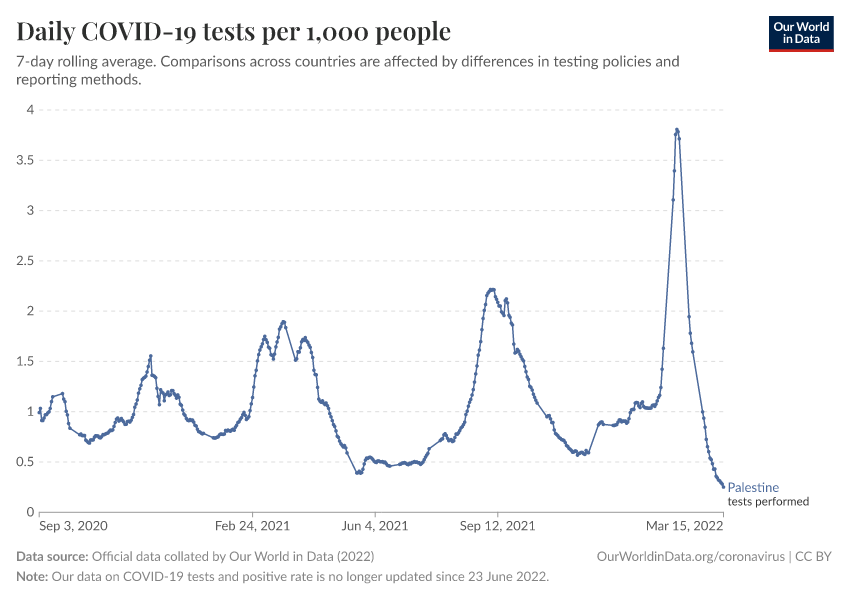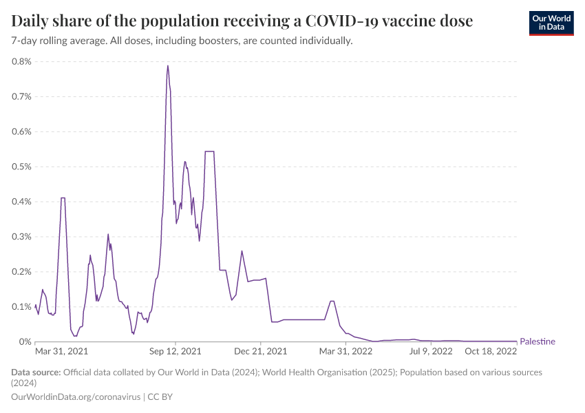 Hannah Ritchie (2025) - “Coronavirus Pandemic” Published online at OurWorldinData.org. Retrieved from: 'https://ourworldindata.org/profile/coronavirus/palestine' [Online Resource]BibTeX citation