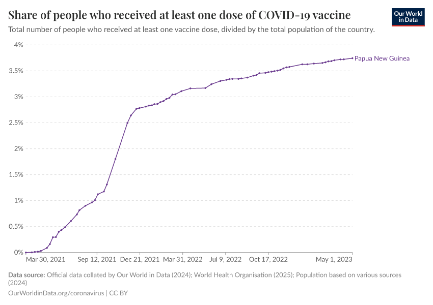 Hannah Ritchie (2025) - “Coronavirus Pandemic” Published online at OurWorldinData.org. Retrieved from: 'https://ourworldindata.org/profile/coronavirus/papua-new-guinea' [Online Resource]BibTeX citation