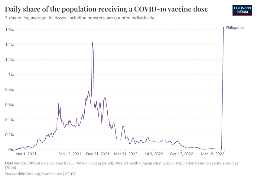 Hannah Ritchie (2025) - “Coronavirus Pandemic” Published online at OurWorldinData.org. Retrieved from: 'https://ourworldindata.org/profile/coronavirus/philippines' [Online Resource]BibTeX citation