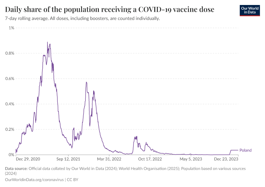 Hannah Ritchie (2025) - “Coronavirus Pandemic” Published online at OurWorldinData.org. Retrieved from: 'https://ourworldindata.org/profile/coronavirus/poland' [Online Resource]BibTeX citation