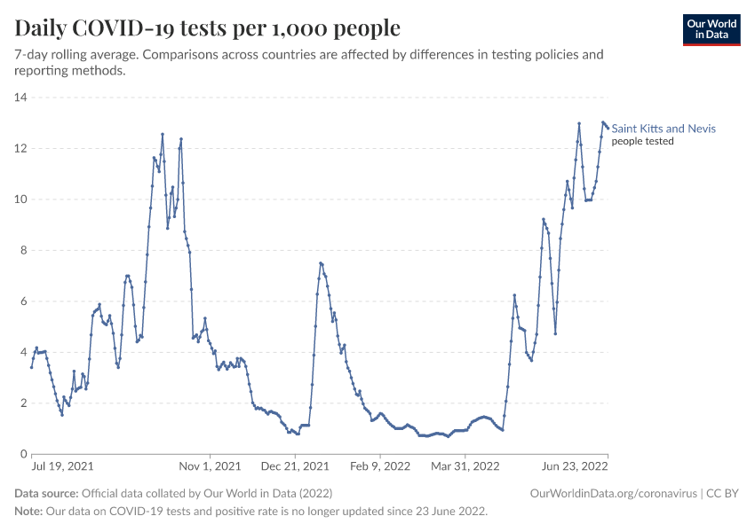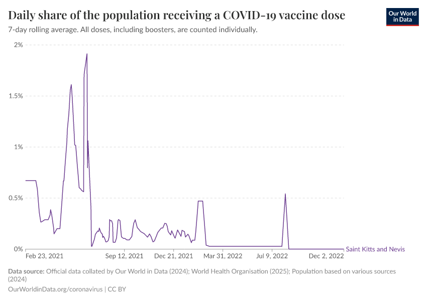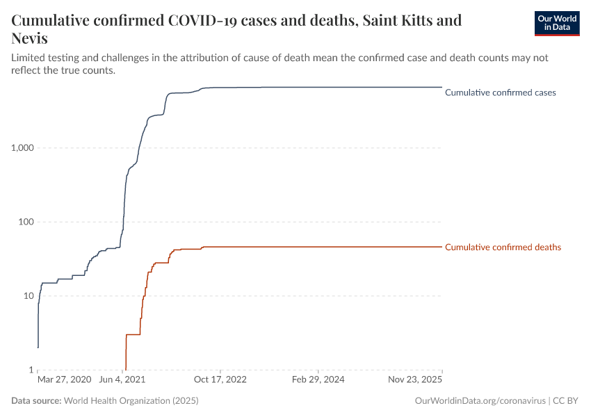 Hannah Ritchie (2025) - “Coronavirus Pandemic” Published online at OurWorldinData.org. Retrieved from: 'https://ourworldindata.org/profile/coronavirus/saint-kitts-and-nevis' [Online Resource]BibTeX citation