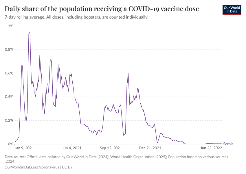Hannah Ritchie (2025) - “Coronavirus Pandemic” Published online at OurWorldinData.org. Retrieved from: 'https://ourworldindata.org/profile/coronavirus/serbia' [Online Resource]BibTeX citation