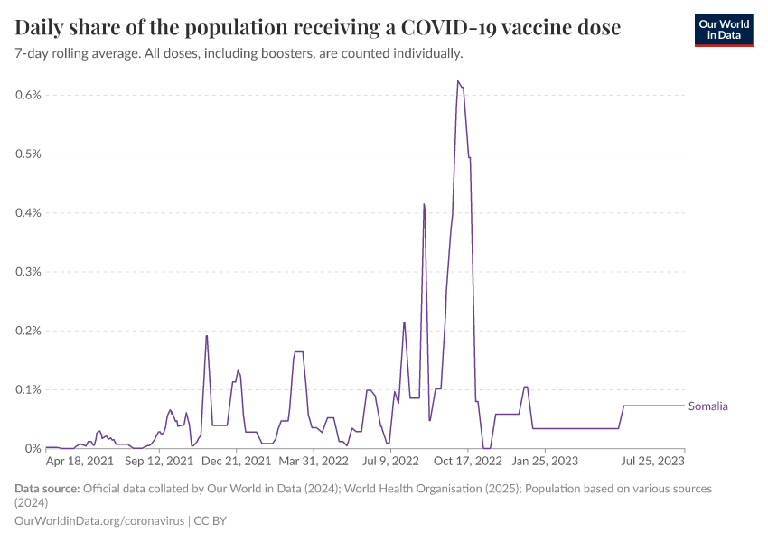 Hannah Ritchie (2025) - “Coronavirus Pandemic” Published online at OurWorldinData.org. Retrieved from: 'https://ourworldindata.org/profile/coronavirus/somalia' [Online Resource]BibTeX citation
