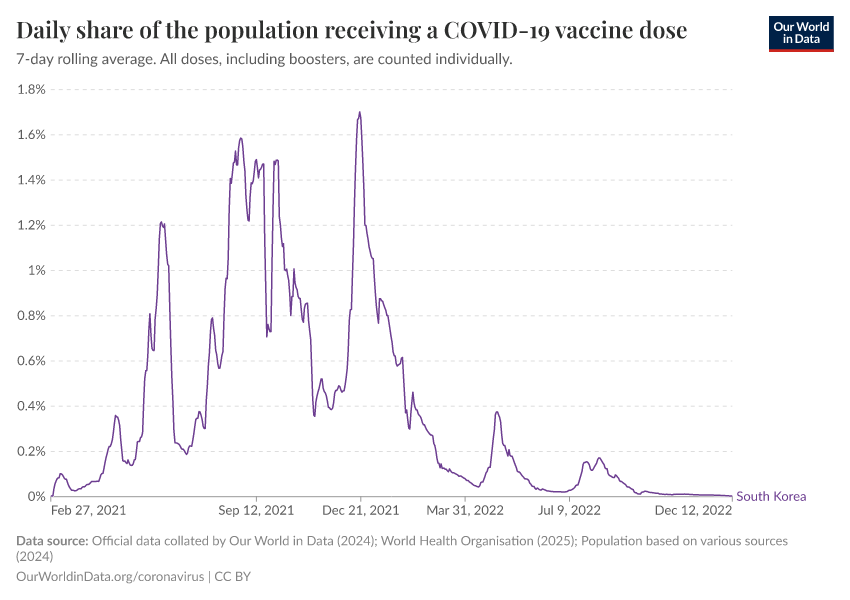 Hannah Ritchie (2025) - “Coronavirus Pandemic” Published online at OurWorldinData.org. Retrieved from: 'https://ourworldindata.org/profile/coronavirus/south-korea' [Online Resource]BibTeX citation