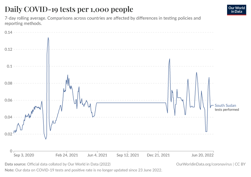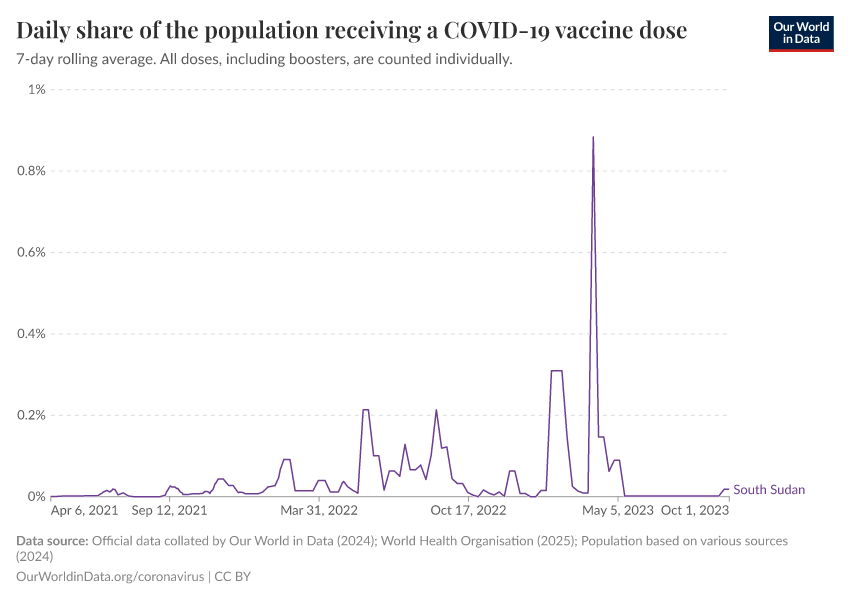 Hannah Ritchie (2025) - “Coronavirus Pandemic” Published online at OurWorldinData.org. Retrieved from: 'https://ourworldindata.org/profile/coronavirus/south-sudan' [Online Resource]BibTeX citation