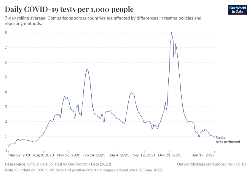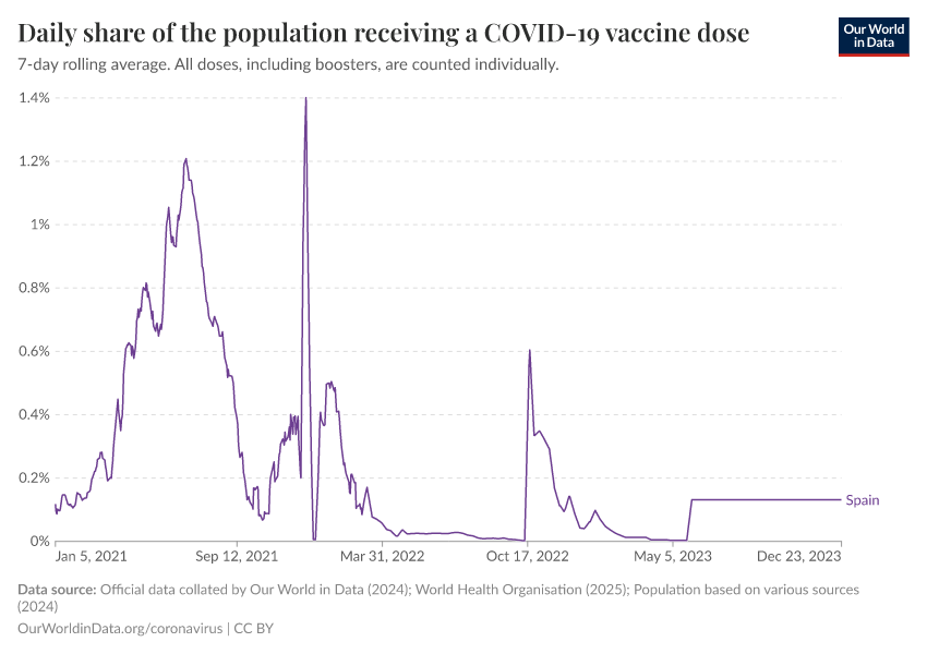 Hannah Ritchie (2025) - “Coronavirus Pandemic” Published online at OurWorldinData.org. Retrieved from: 'https://ourworldindata.org/profile/coronavirus/spain' [Online Resource]BibTeX citation
