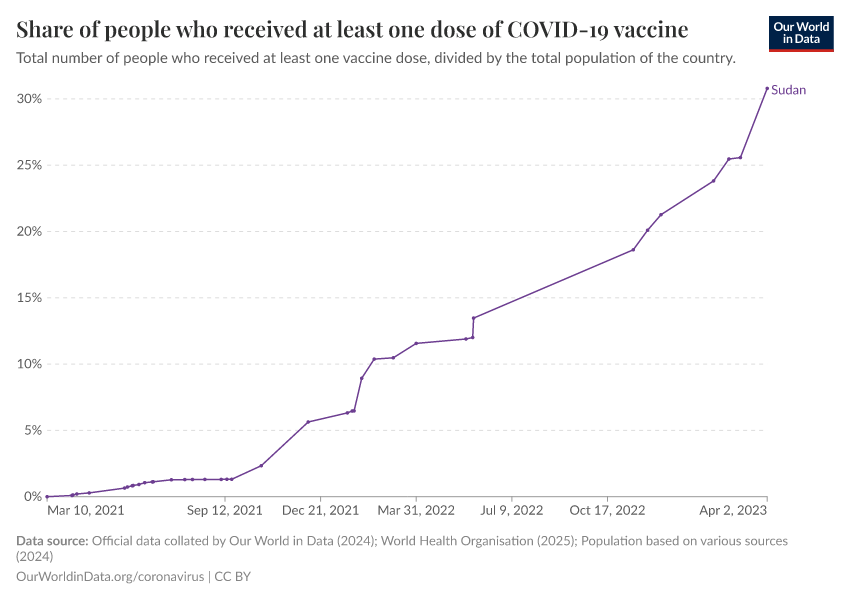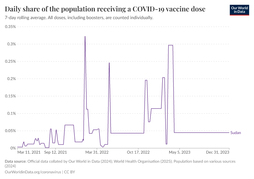 Hannah Ritchie (2025) - “Coronavirus Pandemic” Published online at OurWorldinData.org. Retrieved from: 'https://ourworldindata.org/profile/coronavirus/sudan' [Online Resource]BibTeX citation