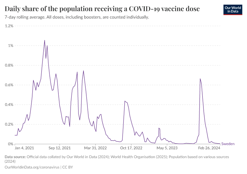 Hannah Ritchie (2025) - “Coronavirus Pandemic” Published online at OurWorldinData.org. Retrieved from: 'https://ourworldindata.org/profile/coronavirus/sweden' [Online Resource]BibTeX citation