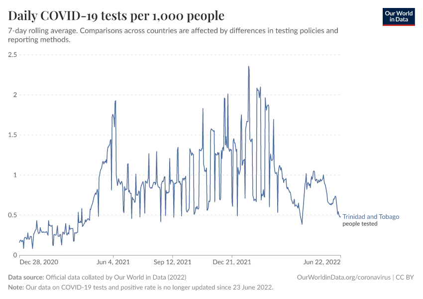 Hannah Ritchie (2025) - “Coronavirus Pandemic” Published online at OurWorldinData.org. Retrieved from: 'https://ourworldindata.org/profile/coronavirus/trinidad-and-tobago' [Online Resource]BibTeX citation