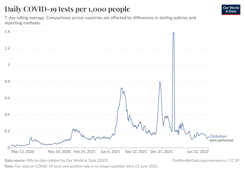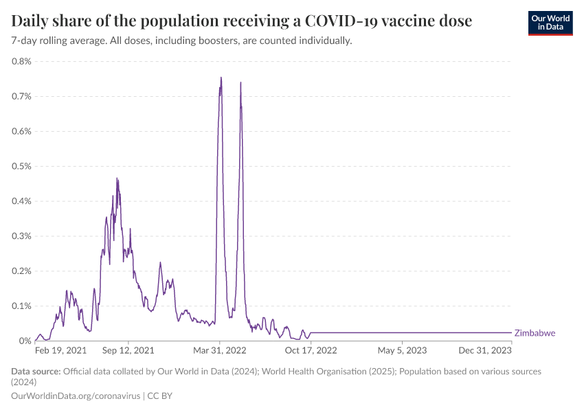 Hannah Ritchie (2025) - “Coronavirus Pandemic” Published online at OurWorldinData.org. Retrieved from: 'https://ourworldindata.org/profile/coronavirus/zimbabwe' [Online Resource]BibTeX citation