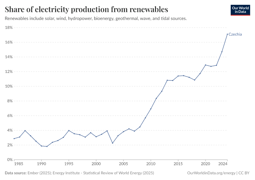 How much of Czechia’s electricity comes from renewables?