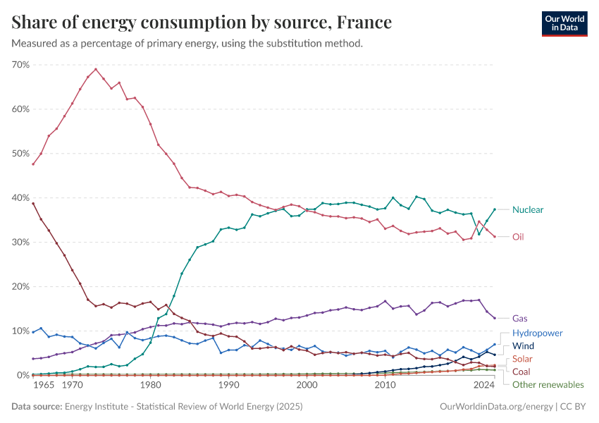 Hannah Ritchie (2025) - “Energy” Published online at OurWorldinData.org. Retrieved from: 'https://ourworldindata.org/profile/energy/france' [Online Resource]BibTeX citation