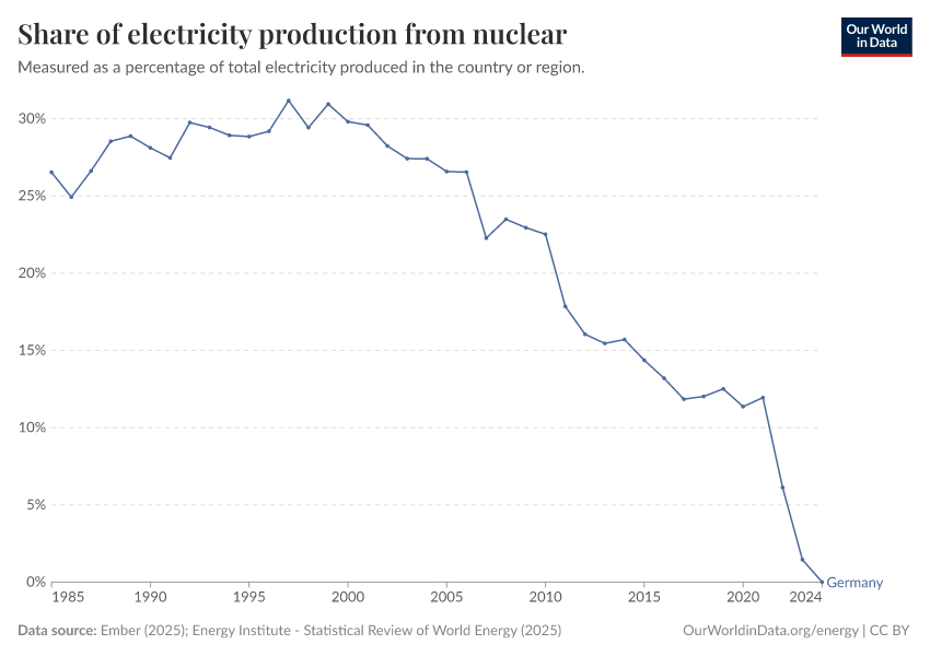 This interactive chart shows the share of electricity that comes from nuclear sources.