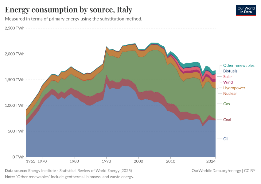 Hannah Ritchie (2025) - “Energy” Published online at OurWorldinData.org. Retrieved from: 'https://ourworldindata.org/profile/energy/italy' [Online Resource]BibTeX citation