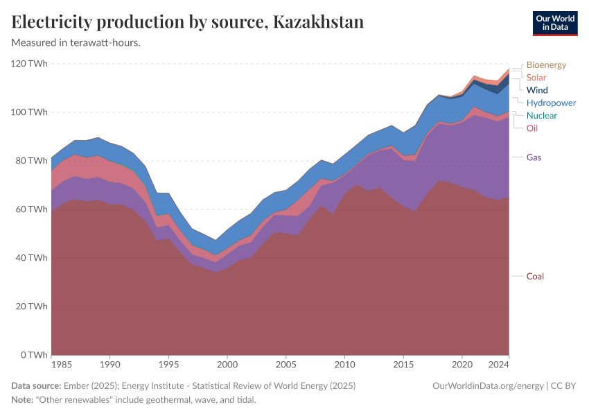 Hannah Ritchie (2025) - “Energy” Published online at OurWorldinData.org. Retrieved from: 'https://ourworldindata.org/profile/energy/kazakhstan' [Online Resource]BibTeX citation