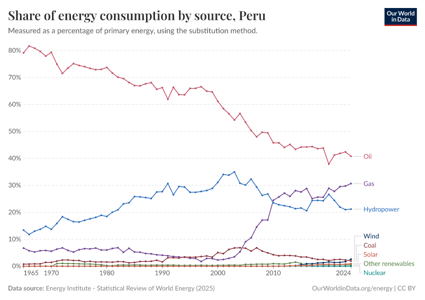 Hannah Ritchie (2025) - “Energy” Published online at OurWorldinData.org. Retrieved from: 'https://ourworldindata.org/profile/energy/peru' [Online Resource]BibTeX citation